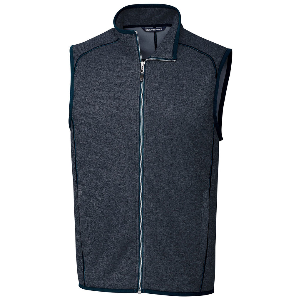 The Cutter & Buck Men's Liberty Navy Heather Mainsail Vest is modern style and comfort at its best. With your company logo added in embroidery to the vest, it will be a readily worn item that also advertises your company name. Available in a variety of classic colors, you can choose the color that looks best with your logo on it. Features of this men's vest include 100% polyester material, brushed fleece interior, full zip front style, front pockets with zip, and CB logo at back yoke. This vest is a great gift to hand out at golf events and trade shows.Corresponding Women's Style:Cutter & Buck Women's Liberty Navy Heather Mainsail Vest