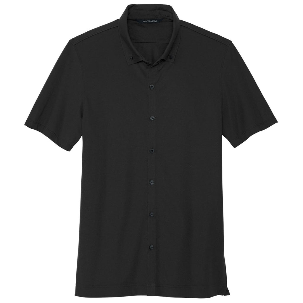 Choose embroidery for the Mercer+Mettle Men's Deep Black Stretch Pique Full-Button Polo for a high-end look that works for the corporate office or a night out with friends. The polished silhouette is great for the office with a custom logo or to use as a unique uniform for employees. The moisture wicking fabric means all day wear is not an issue for this polo. Place an order today.Highlights