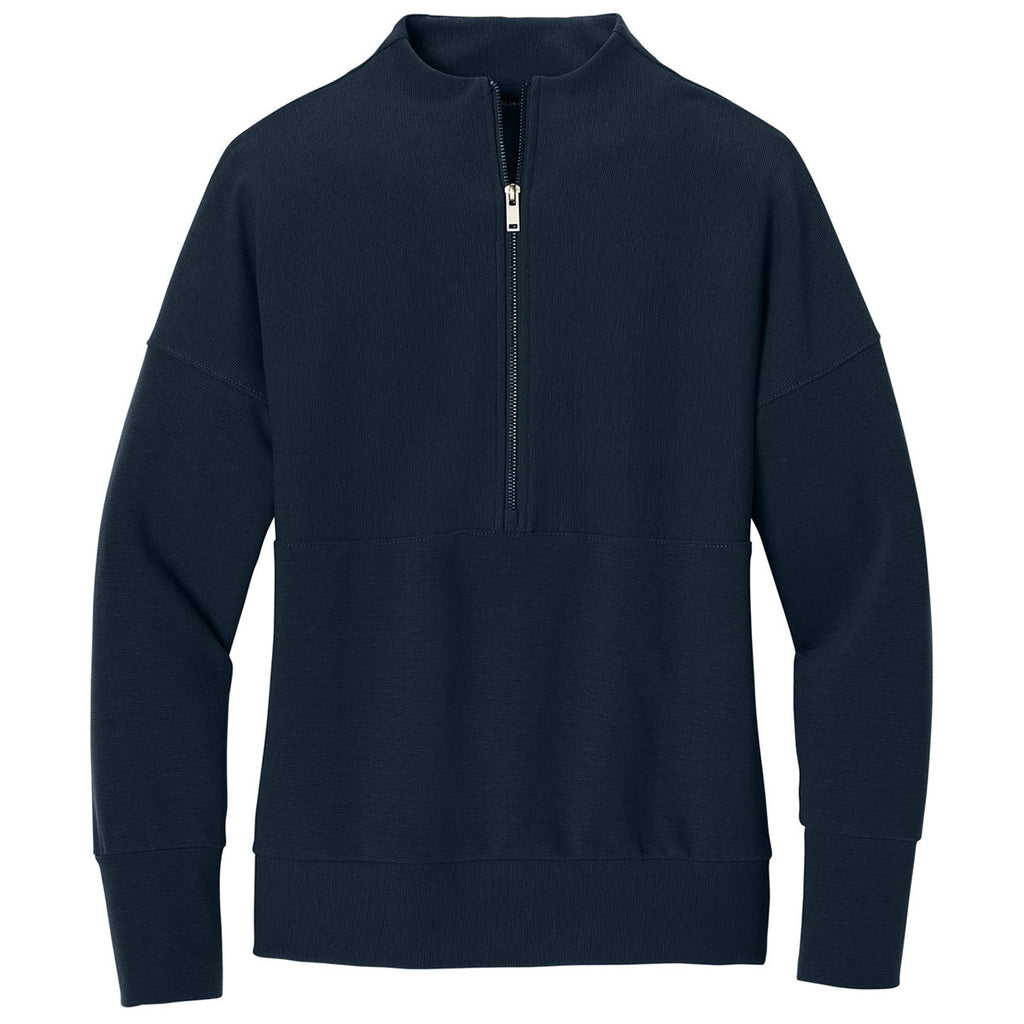 The Mercer+Mettle Women's Night Navy Linear Texture 1/4-Zip with embroidery combines elegance and comfort with its textured fabric and sleek design. The 1/4-zip closure provides adjustable coverage while the moisture-wicking material keeps you cool and dry. Whether for work or weekend wear, this pullover offers a refined yet functional solution for layering.Corresponding Men's Style: Mercer+Mettle Men's Night Navy Linear Texture 1/4-Zip
