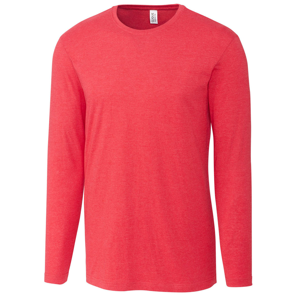 Wear the versatile Clique Men's Red Heather Long Sleeve Phoenix Tee as the middle layer of winter apparel or as the only layer you wear backpacking through the wilderness. The smooth feeling tee traps body heat to deliver optimal comfort on bone chilling days. One-hundred percent cotton not only feels super soft, the fabric also resists rips and tears to get you through several winters. Remove the tear away tag and utilize the empty space to screen print a custom logo that promotes your company. Open sleeves and rib knit neck trim accentuate an already visually appealing look.Corresponding Women's Style: Clique Women's Red Heather Long Sleeve Phoenix Tee