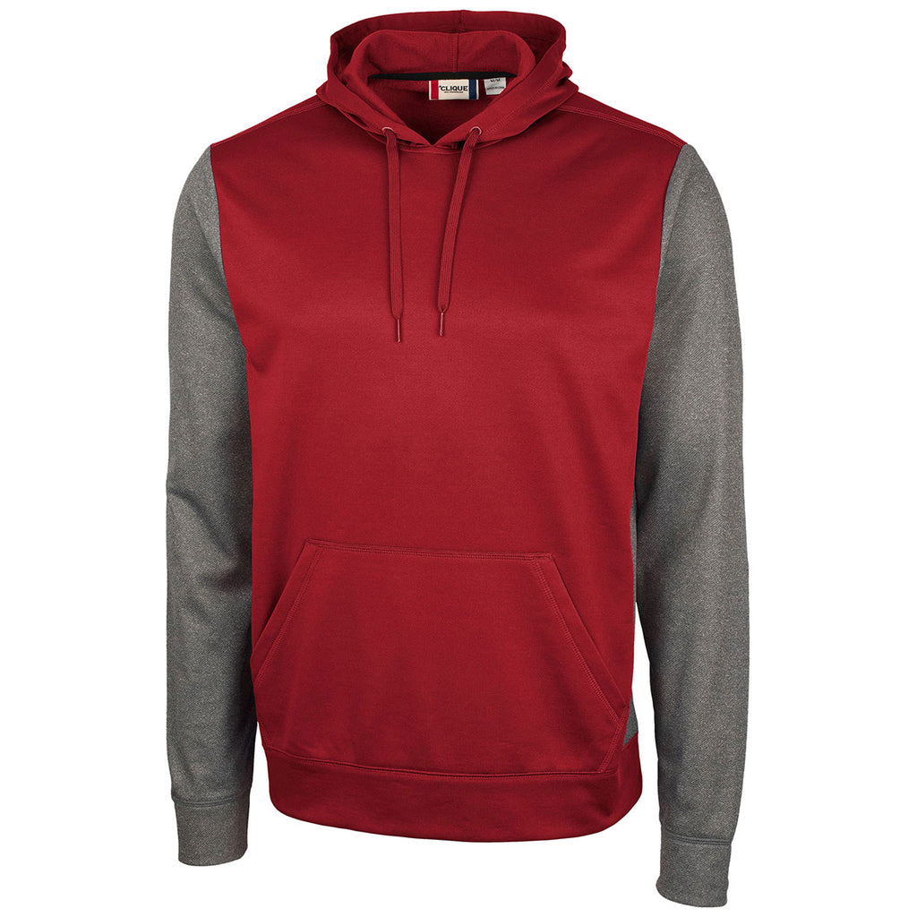 The Clique Men's Cardinal Red Helsa Sport Colorblock Pullover combines fashion and comfort in one eye-catching pullover sweatshirt. With a custom logo added in screen print, you can turn this comfortable sweatshirt into an advertising product as well. Features include a variety of classic color options, 100% polyester fleece material, long sleeve cuffs in heather fabric, hood with drawstring, and kangaroo pocket. Purchase this item to use as prizes for corporate golf events or to hand out at recruiting events. You may want to buy some extra ones to hand out to your loyal employees, too.Corresponding Women's Style:Clique Women's Cardinal Red Helsa Sport Colorblock Pullover