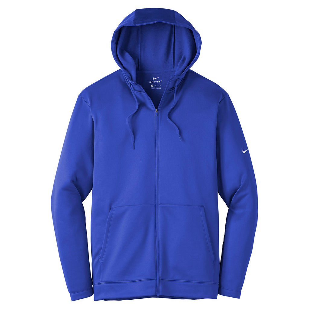 Unite the corporate team before the next big project by giving away the logoed Nike Men's Game Royal Therma-FIT Full-Zip Fleece Hoodie. Nike developed Therma-FIT technology to trap body heat, which makes the fleece hoodie perfect for active professionals that love to downhill and cross country ski. Moisture management properties allow you to push it to the limit and not have to worry about the discomfort caused by an abundance of moisture. Thumbholes increase the fabric coverage around the hands. Add your company logo on the large imprint area and watch your brand reach new marketing heights.