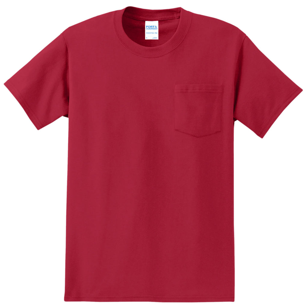 The Port & Company Men's Red Essential Pocket Tee is a classic t-shirt that will make sure your brand's custom logo or design always gets the attention it deserves. On the chest, a pocket adds extra visual impact to this wearable piece, which is made from a comfortable, breathable fabric.Highlights