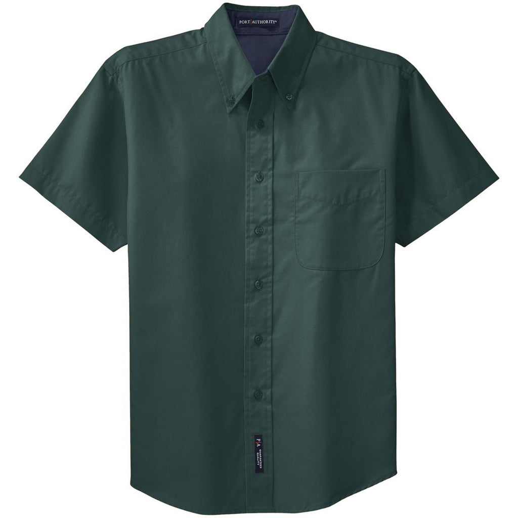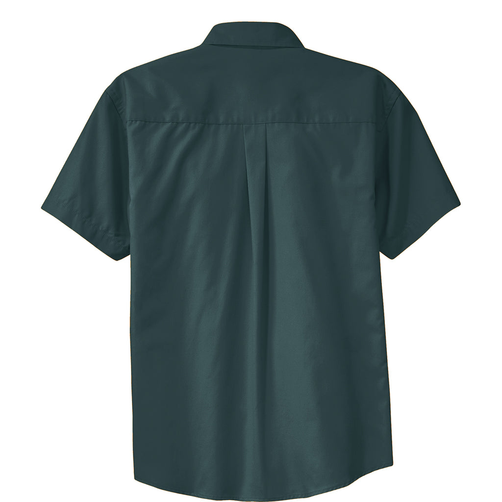 A short-sleeve button-down made for the workday but professional enough for upscale events? No, you're not dreaming: that's actually an apt description for Port Authority Men's Dark Green/Navy Short Sleeve Easy Care Shirt. The 4.5-ounce, 55/45 cotton/poly blend fabric is perfect for breathing, while the button-down collar ensures that your employees will always be event-appropriate. The patch pocket scores points for function as well as dressiness, and the dyed-to-match buttons are as subtle as they are necessary. And if you ask us, a good work shirt should be understated, allowing your own corporate embroidery and custom business logo to earn the attention.Corresponding Women's Style: Port Authority Women's Dark Green/Navy Short Sleeve Easy Care Shirt