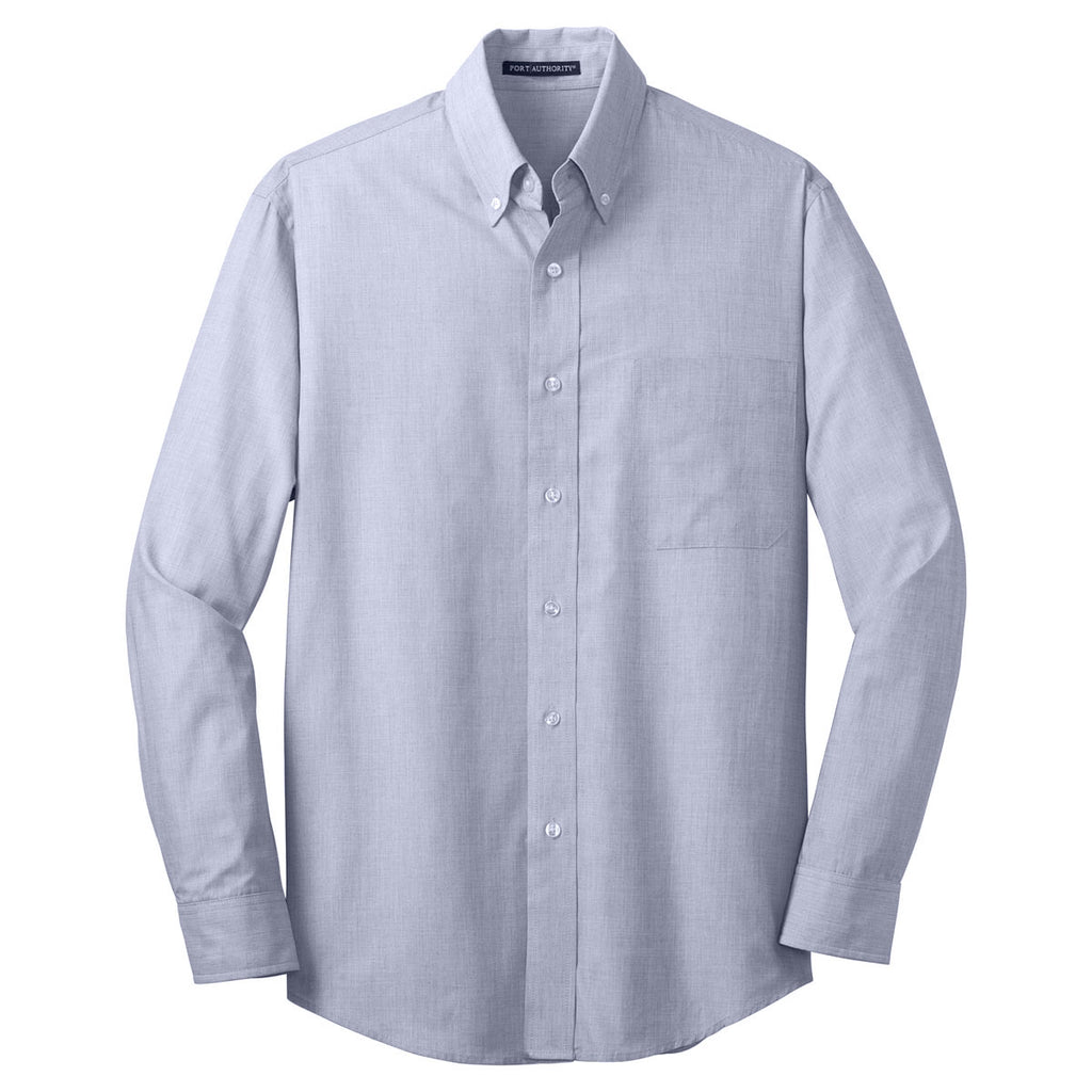 Dress shirts should be three things: stylish, comfortable, and professional. The Port Authority Men's Navy Frost Crosshatch Easy Care Shirt fits all three. In fact, you'll find that these goals very much line up with your corporate goals, which is why this shirt is perfect for matching a sense of style with your individual brand. Create your business apparel by using our embroidery process to affix your logo to this shirt.Corresponding Women's Style: Port Authority Women's Navy Frost Crosshatch Easy Care Shirt