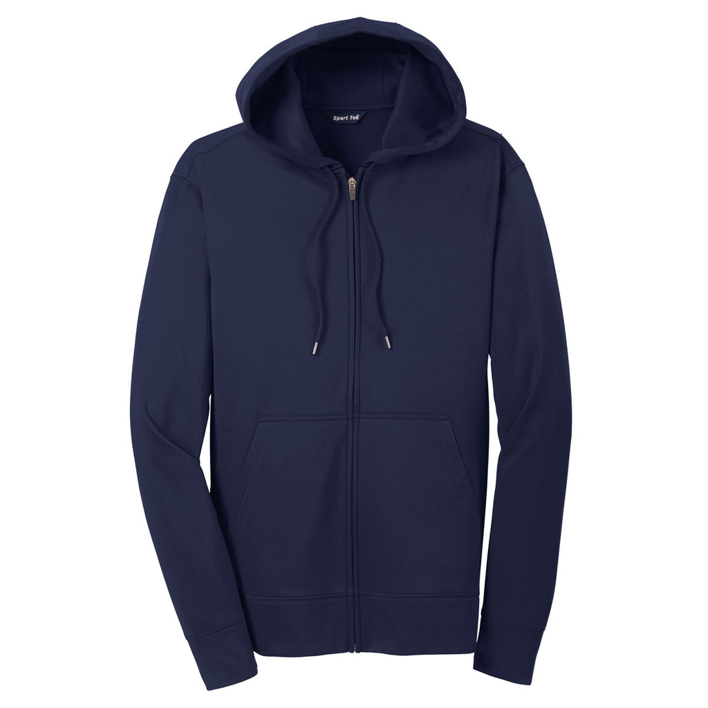 When the weather gets tough, so must you. That's the idea behind this Sport-Tek Men's Navy Sport-Wick Fleece Full-Zip Hooded Jacket. Add your own custom embroidery to make this a piece of corporate apparel that anyone can enjoy. Layering is ideally suited to serve as your canvas, and this is an item that will work for you in the elements, not against.Corresponding Women's Style:Sport-Tek Women's Navy Sport-Wick Fleece Full-Zip Hooded Jacket