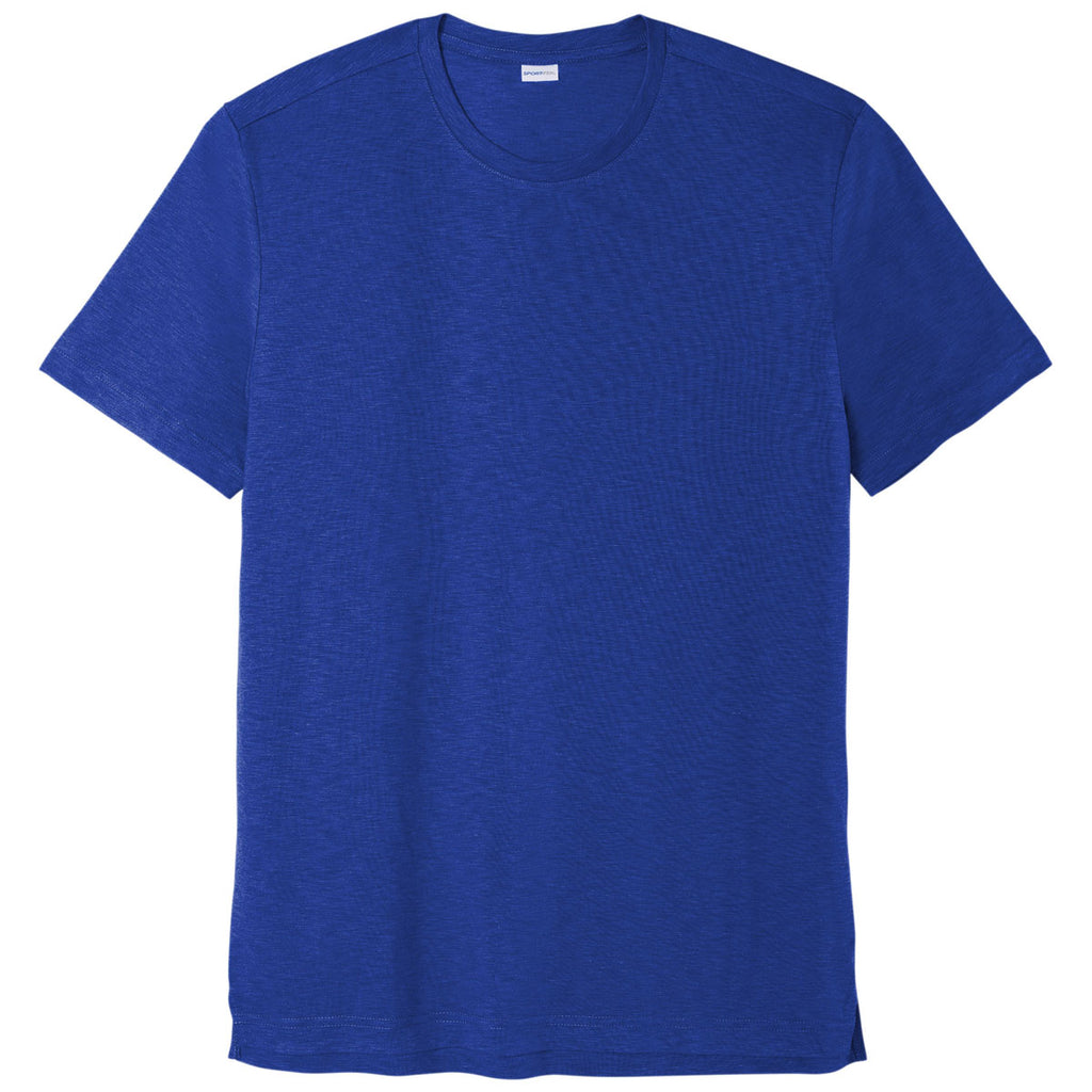 Design your screen print for the Sport-Tek Men's True Royal PosiCharge Strive Tee that was inspired by current streetwear. The elevated heathered tee is moisture wicking and comes in vibrant color options. The lightweight, short-sleeve tee offers cotton with PosiCharge technology with set0in sleeves and a tearaway label. Add a custom logo to create your own section of streetwear for your logoed apparel line or a company logo to use as employee apparel for those working in a trendy environment. Great for layering or wearing alone, this tee can go from home to an evening with friends in a heartbeat.Highlights