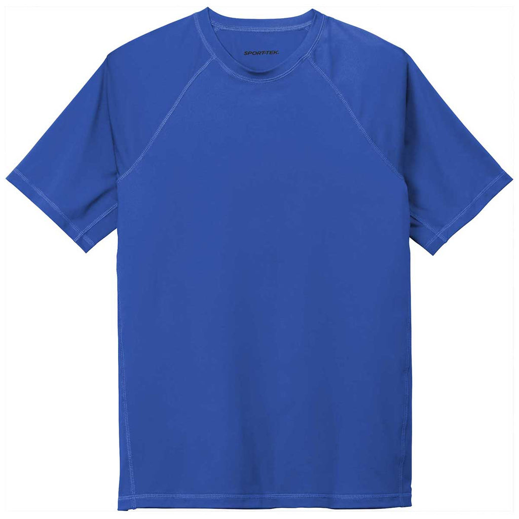 Get ready to swim laps with a custom heat transfer Sport-Tek Men's True Royal Short Sleeve Rashguard Tee. Made of a poly-rich and spandex stretch jersey, these tees were made to stretch and move with you while enjoying water activities. Add a custom logo to the high-performance tees to use for team events. The PosiCharge technology keeps the logo from fading, even while being involved in water sports. Add a company logo to those tees that will be used as company uniforms. Perfect for coaches, instructors, or even those who work with water animals. A UPF rating of 50 means that the wearer will be protected from the sun in this trim, comfortable fitting tee with raglan sleeves and underarm gussets.Corresponding Women's Style: Sport-Tek Women's True Royal Short Sleeve Rashguard Tee