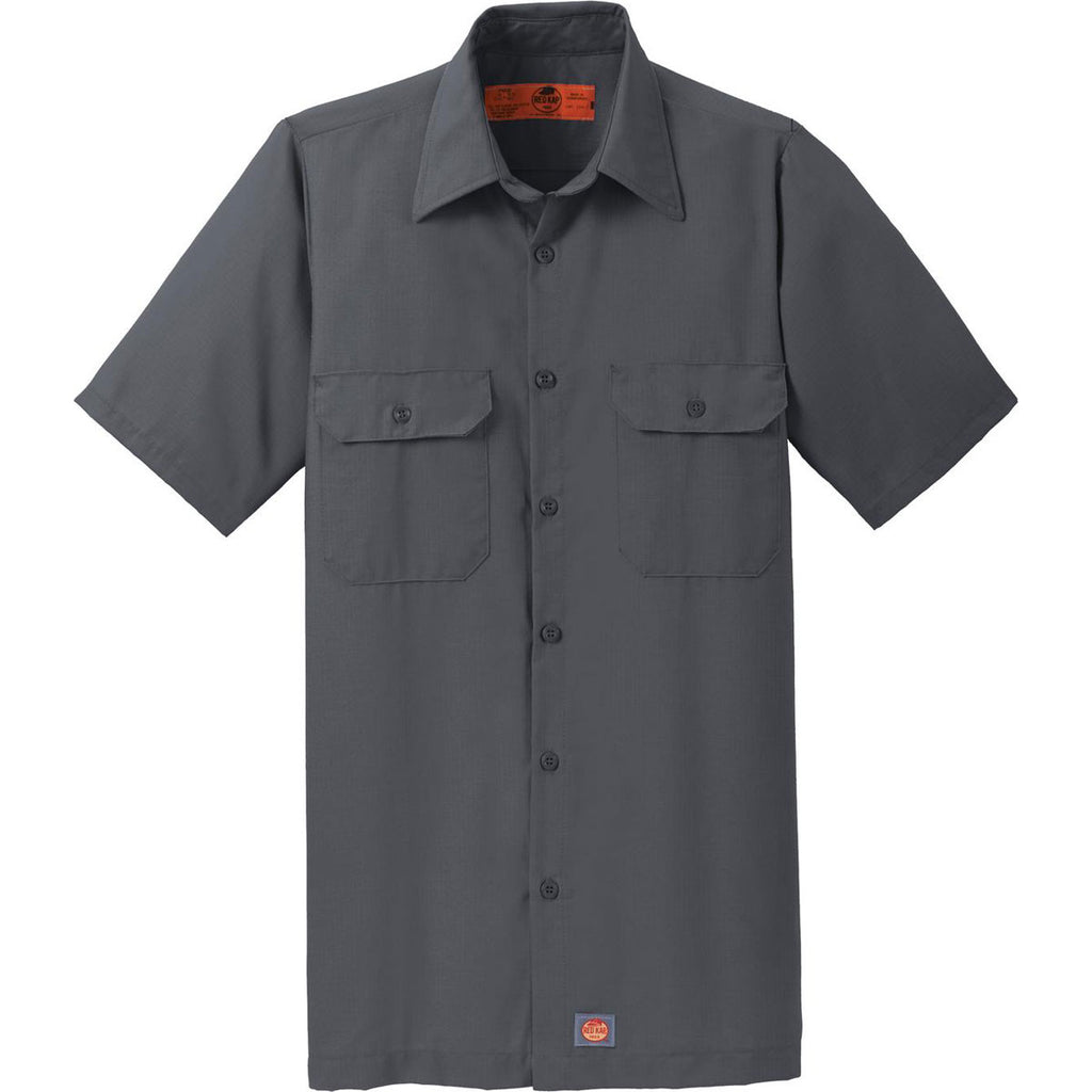 It may look casual and even office-ready, but where it counts, this Red Kap Men's Charcoal Short Sleeve Solid Ripstop Shirt is all blue collar. And that's good news, because your work space isn't always computers and spreadsheets. Sometimes it means getting your hands dirty. With the lightweight poly/cotton poplin ripstop fabric you see here, you'll have a dress shirt that does more than just look good-it also offers garage-ready function at a moment's notice. Simply add your custom logo to this shirt, and you'll add your brand to a blue-collar shirt that works as hard as you do.Highlights