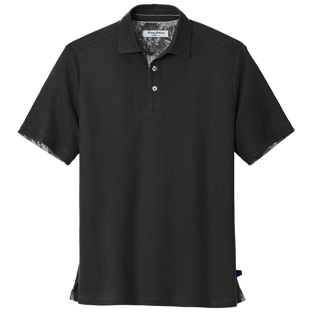 The Tommy Bahama Men's Black 5 O'Clock Polo is made from a luxuriously soft fabric that will keep you comfortable on the course, the beach, or at after-hours drinks. Add your company's custom logo or design to this pique fabric polo to create a professional look that will take your team absolutely anywhere.