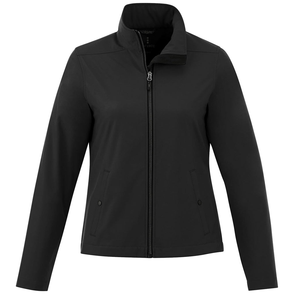 With the custom Elevate Women's Black Karmine Softshell Jacket the wearer will enjoy warmth and style, all in one lovely outerwear item. Choose from six vibrant and classic colors to provide the recipient with the perfect lightweight jacket. Features you'll find with this aesthetically-pleasing and durable jacket include a three-layer construction, waterproof membrane, water-repellent finish, two exterior pockets with snap closure and zipper front. Logo embroidery options make this an ideal jacket for employee apparel, which can be worn to and from the office or on the weekends, providing your employee with the perfect outerwear option. Your employees are sure to love this corporate apparel gift.Corresponding Men's Style: Elevate Men's Black Karmine Softshell Jacket