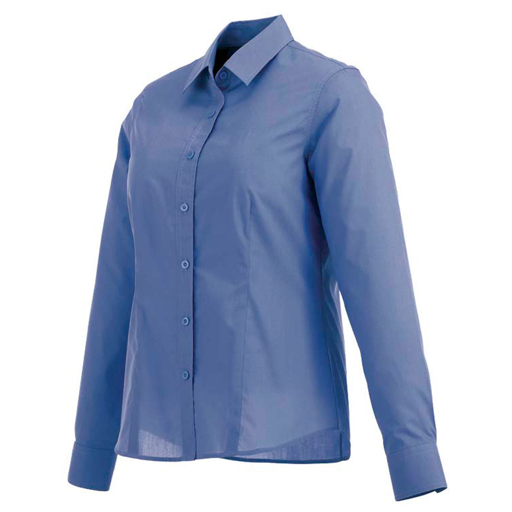 The Elevate Women's Blue Preston Long Sleeve Shirt with your custom logo presents a sophisticated advertisement for your company. Every female employee will appreciate this gift so be sure you include it in your next corporate giveaway. You can even give it to your business partners. Whenever you have a corporate event, your employees can dress in these shirts, which will make them look sharp. Whether they are going to work or having a cup of coffee with their friends, your employees can wear this shirt and always look great. It is a 65% polyester, 35% cotton poplin woven fabric blend. It is available in a variety of colors making it a great option for work uniforms.Corresponding Men's Style: Elevate Men's Blue Preston Long Sleeve Shirt