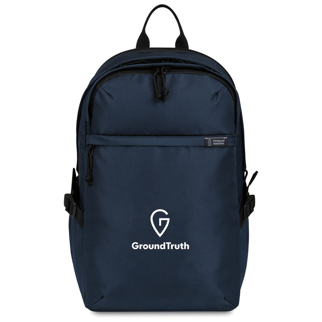 Enjoy a custom modern look with the Gemline Navy Renew rPET Computer Backpack that is both updated and sustainable in its look and style. Computers are a part of our daily lives and this backpack makes it easier to carry your electronics wherever you may need to be. The top dual zippered pocket keeps accessories together while the rear padded zippered compartment holds laptops up to 15 inches. Dual side water bottle holders, interior lock pockets, and padded adjustable shoulder straps make this a wonderful option for daily use. Place an order to make sure these are in stock for your next event.
