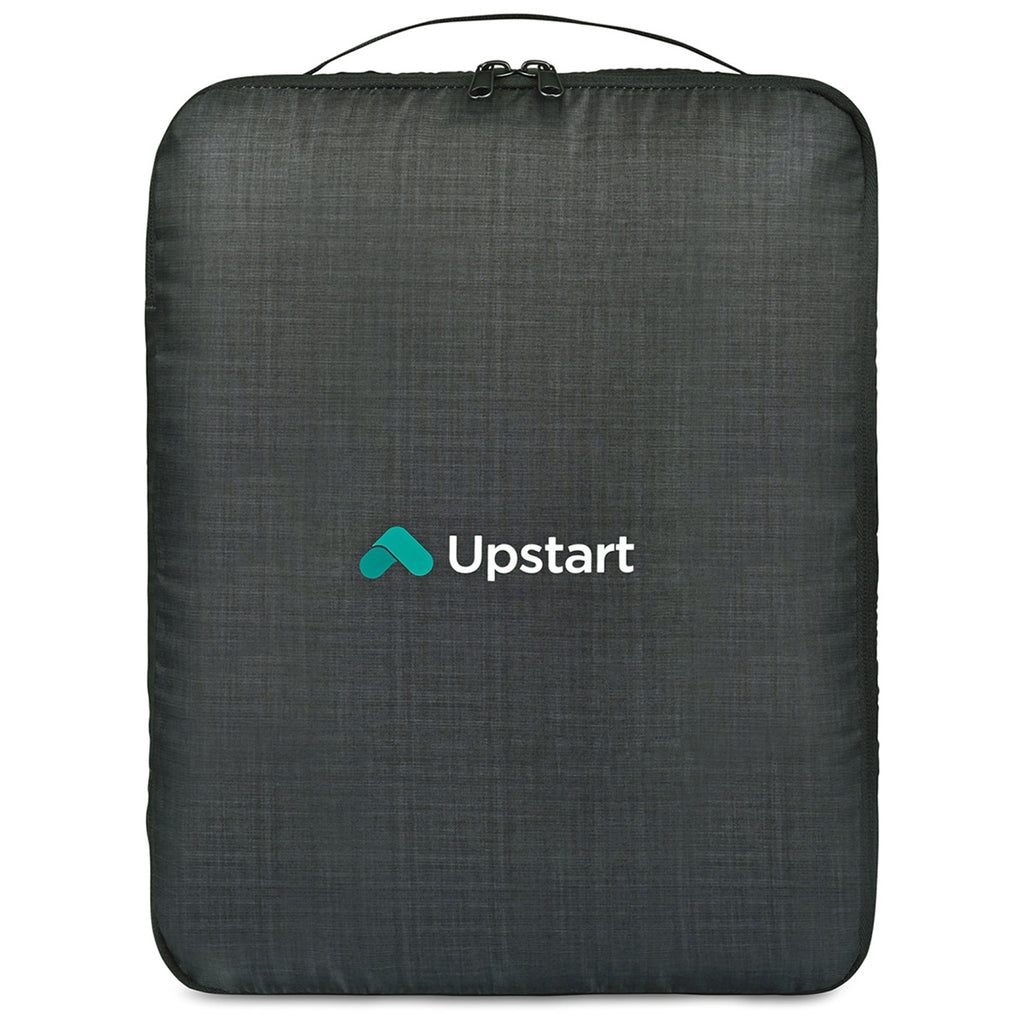 Design a custom logo for the Gemline Black Sand Alba Large Packing Cube to create a simple way to pack when space is limited. Whether traveling for the week or the month, saving space has never been easier than with the large packing cube. Great for folded shirts, pants, and dresses, the compression engineering eliminates bulk.