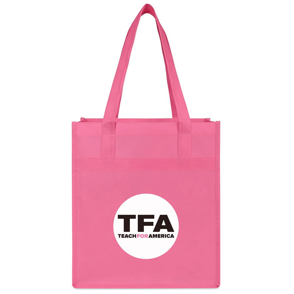 Be eco-friendly with a custom logoed Gemline Pink Arlo rPET Deluxe Shopper. This recycled shopper tote is designed for everyday adventures with a splash of color. The reusable shopping bag is perfect for groceries, with a large main compartment and 24-inch shoulder straps for easy carrying. Order several colors to provide options.The minimum order for this product is 150 pieces.