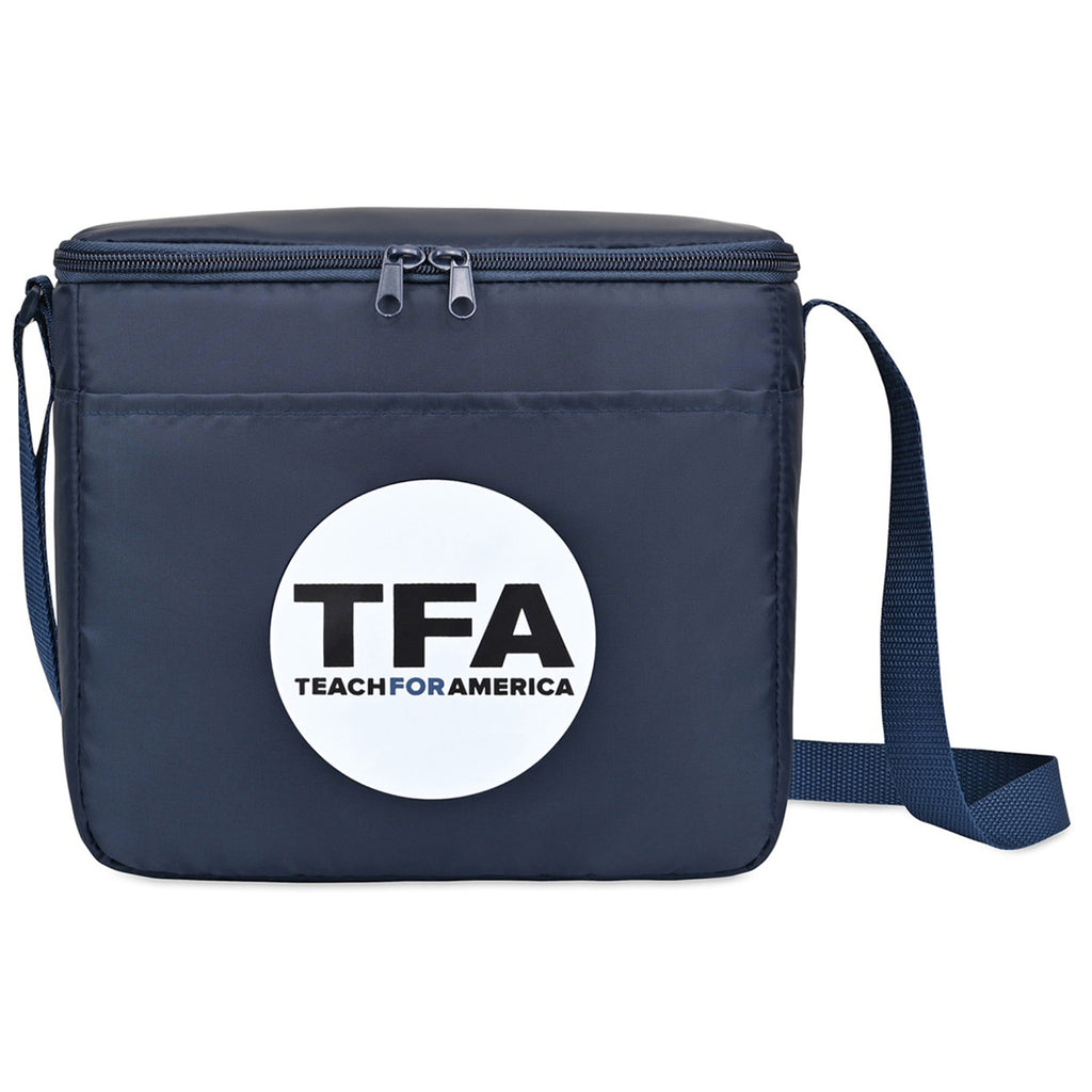 Gemline Navy Arlo rPET 9 Can Box Cooler with a corporate logo is a perfect promotional item that will be used on all types of adventures. Whether going to a sporting event, hiking, or to a picnic in the park, this box cooler has a zippered main opening and a front pocket for a few extra snacks or your phone and keys.The minimum order for this product is 50 pieces.