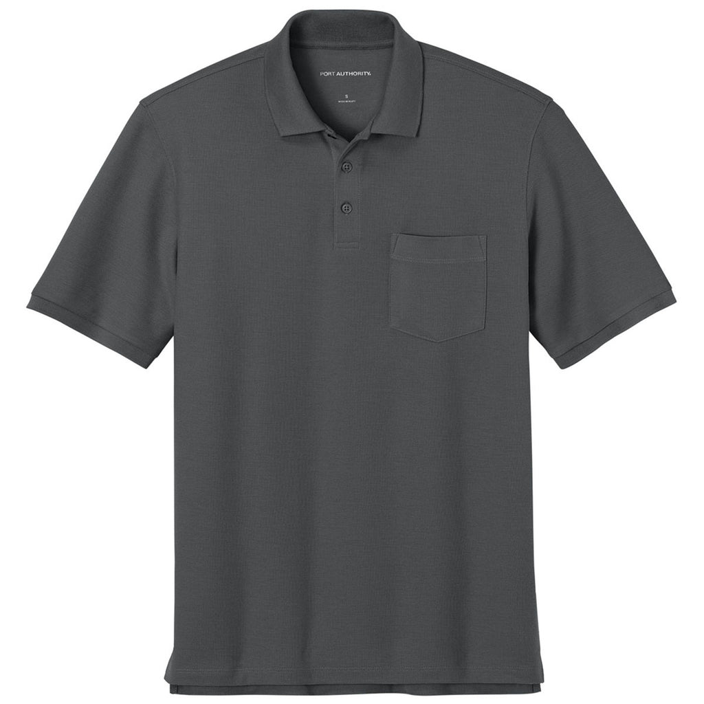 Port Authority Men's Storm Grey Tall Wearever Signature Pique Pocket Polo