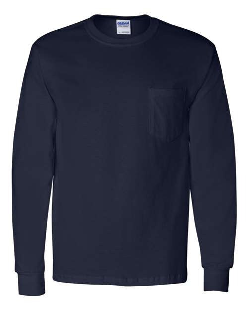 Gildan Unisex Navy Ultra Cotton Long-Sleeve Pocket T-ShirtHighlights