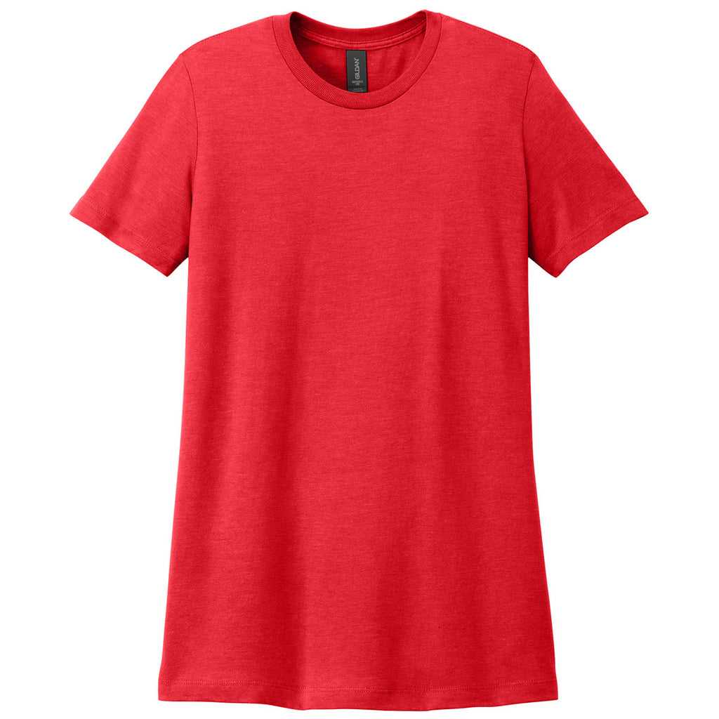 A simple silhouette and a flattering fit make the Gildan Women's Red Mist Softstyle CVC T-Shirt the perfect way for the ladies on your team to show off your company's custom logo or design. Ideal for athletes or anyone with an active lifestyle, it's made from a breathable fabric that will always keep your team comfortable.