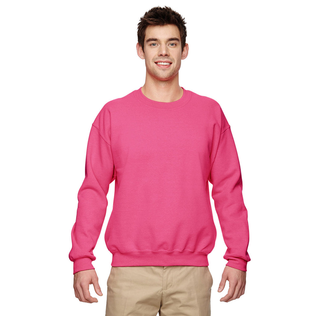 For golf and recruiting events, you cannot go wrong by giving away the custom logoed Gildan Unisex Safety Pink Heavy Blend 50/50 Fleece Crew. Screen print your corporate logo on the shirts to promote your company before corporate sponsored 5k races. Blended cotton and polyester deliver supreme comfort, while resisting rips and tears to give you go to company shirts for years to come. Double needle stitching withstands the punishment handed out by active professionals that participate in a wide variety of high-energy sports. Set-in sleeves present a stylish appearance that gets your team noticed at outdoor corporate events.Highlights