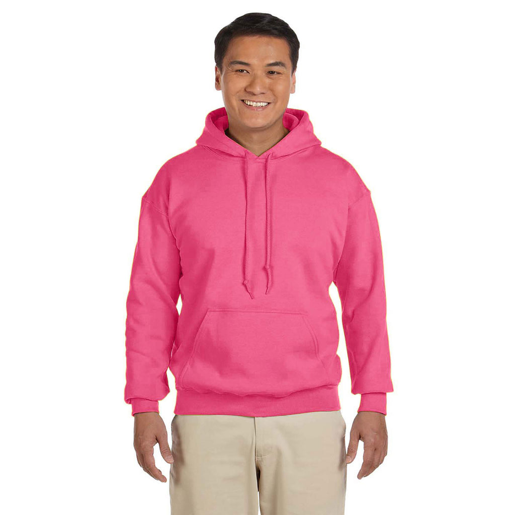 Change the way professional peers look at sweatshirts by ordering the logoed Gildan Unisex Safety Pink Heavy Blend 50/50 Hoodie. Pill-resistant air jet yarn keeps the hoodie in pristine condition for years to come. Rip and tear resistant double needle stitching gives you go to hoodies for every member of your high flying team of employees. The double-lined hood protects the most vulnerable part of the body against harsh winter weather conditions. Print your company logo to increase recognition of your products and services at professional networking events. Cotton and polyester combine to deliver superior softness and long lasting durability.Highlights
