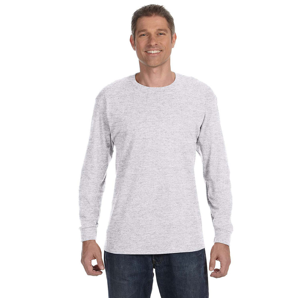 Welcome the new members of your company team by giving away the screen printed Gildan Men's Ash Grey 5.3 oz. Long Sleeve T-Shirt. Ribbed cuffs and the seamless rib on the back of the long sleeve shirts will grab the attention of your professional peers at industry trade shows. Turn the attention into sales by displaying a custom logo screen printed on the super smooth fabric. Logoed corporate apparel represents a highly effective way to stir interest in what your brand has to offer. Double needle stitching throughout the t-shirt resists the types of rips and tears that diminish the quality of other shirts.Highlights
