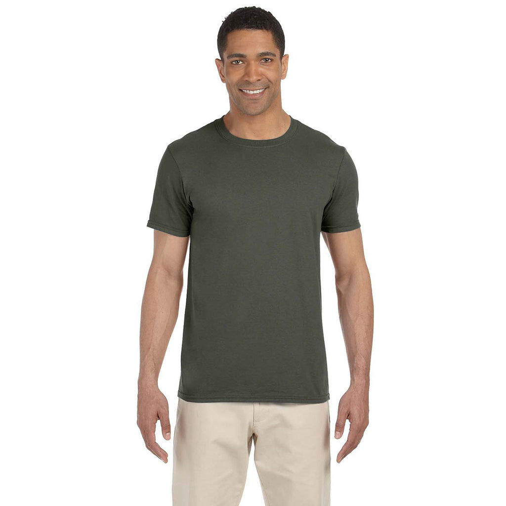 Generate a little employee swag by ordering the screen printed Gildan Men's Military Green Softstyle 4.5 oz. T-Shirt. Double needle stitching at the sleeves and bottom hem resist the types of rips and tears that eventually unravel inferior designed company shirts. Enjoy the super soft comfort of 100% preshrunk cotton underneath a dress shirt or as the lone layer for outdoor corporate events. Print a custom logo on the t-shirt to boost the image of your company at industry trade shows. The taped neck and shoulder combined the fashion elements of style and long lasting durability.Highlights