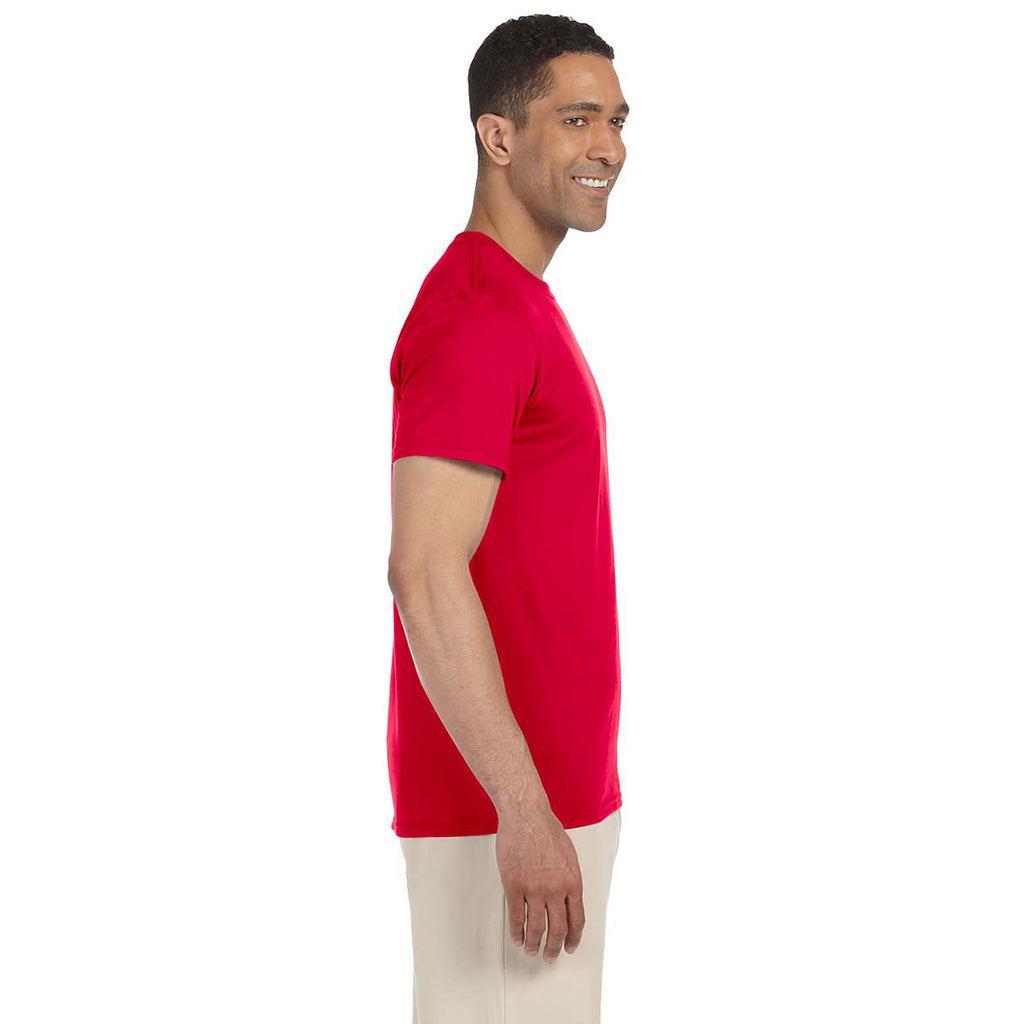 Generate a little employee swag by ordering the screen printed Gildan Men's Cherry Red Softstyle 4.5 oz. T-Shirt. Double needle stitching at the sleeves and bottom hem resist the types of rips and tears that eventually unravel inferior designed company shirts. Enjoy the super soft comfort of 100% preshrunk cotton underneath a dress shirt or as the lone layer for outdoor corporate events. Print a custom logo on the t-shirt to boost the image of your company at industry trade shows. The taped neck and shoulder combined the fashion elements of style and long lasting durability.Corresponding Women's Style: Gildan Women's Cherry Red Softstyle 4.5 oz. Fitted T-Shirt