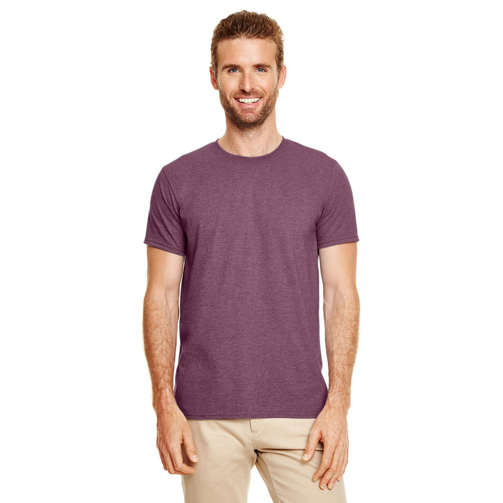 Generate a little employee swag by ordering the screen printed Gildan Men's Heather Maroon Softstyle 4.5 oz. T-Shirt. Double needle stitching at the sleeves and bottom hem resist the types of rips and tears that eventually unravel inferior designed company shirts. Enjoy the super soft comfort of 100% preshrunk cotton underneath a dress shirt or as the lone layer for outdoor corporate events. Print a custom logo on the t-shirt to boost the image of your company at industry trade shows. The taped neck and shoulder combined the fashion elements of style and long lasting durability.Highlights