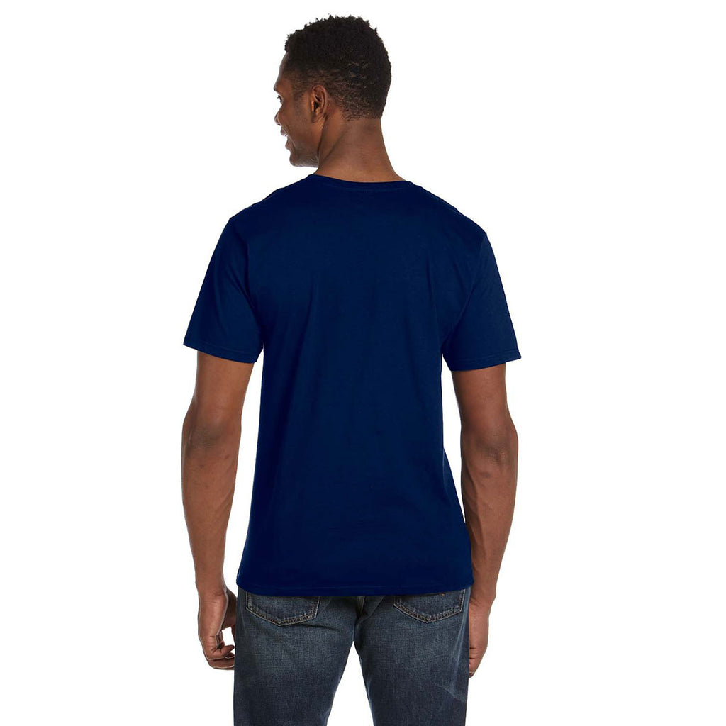 Give away the company logoed Gildan Men's Navy Softstyle 4.5 oz. V-Neck T-Shirt at the next corporate sponsored golf event to create goodwill with customer prospects in the community. The stylish shirt comes with a large area to screen print a custom logo. With your corporate logo on display, you generate buzz for your brand everywhere you travel. Designed with 100% preshrunk cotton, your employees will be comfortable all day long both at the office and at home. Taped neck and shoulders present a refined appearance worthy of an accomplished professional to wear at work and play.Corresponding Women's Style: Gildan Women's Navy SoftStyle 4.5 oz. Fitted V-Neck T-Shirt