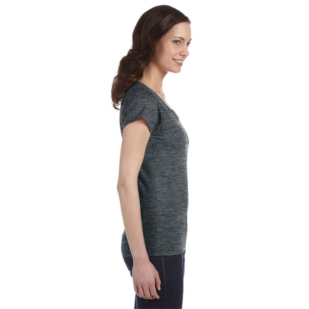 Gildan Women's Dark Heather SoftStyle 4.5 oz. Fitted V-Neck T-Shirt