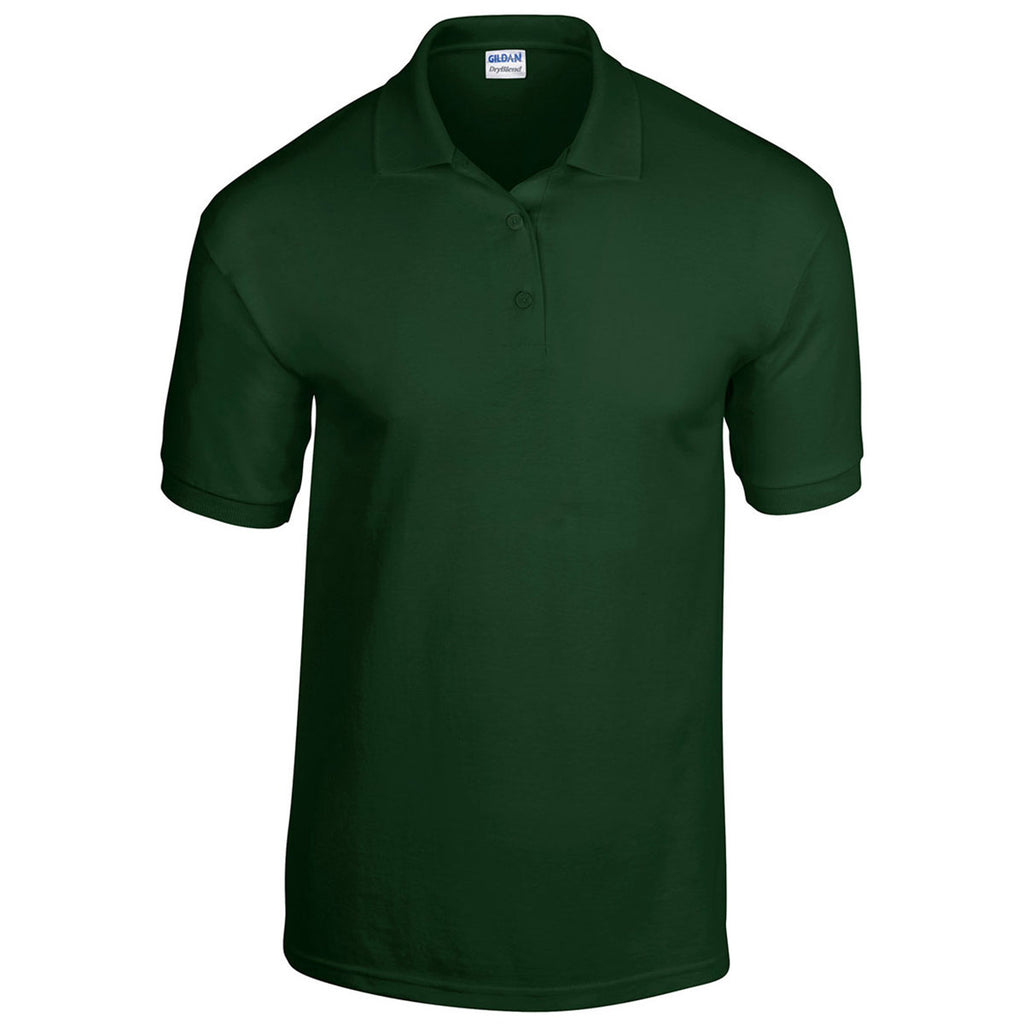 Gildan Men's Forest Green 6 oz. 50/50 Jersey Polo will show off your custom logo with pride. The lightweight cotton and polyester blend polo is great for the office or when hitting the links. The moisture-wicking properties keep you dry whether presenting for a meeting or playing the best round of your life. Place an order today.Highlights