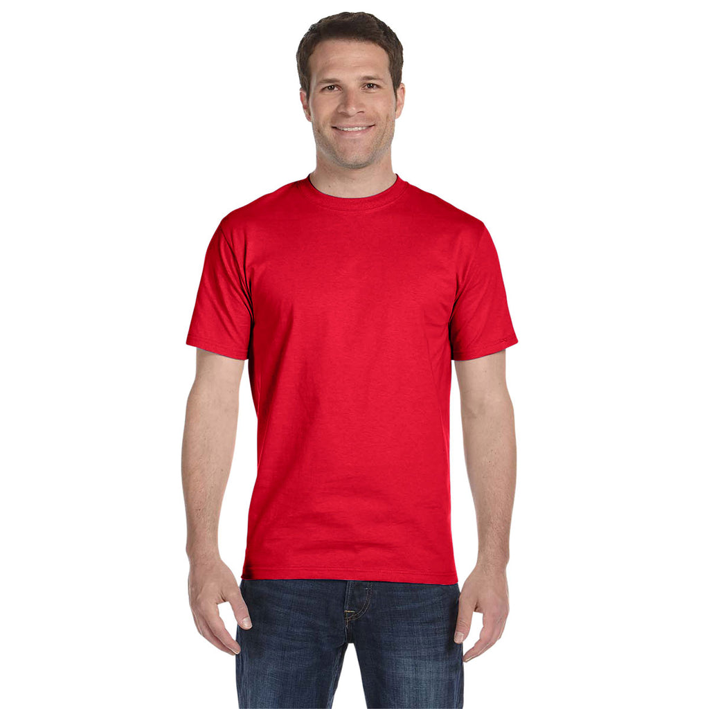 Add a custom logo to your Hanes Men's Athletic Red 5.2 oz. ComfortSoft Cotton T-Shirt to show team or company spirit no matter the activity. The beautiful screen print will not only draw the eye, but offer the comfort needed to help people want to wear your shirt. Great as employee apparel for daily wear or to use at recruiting events to draw a crowd. Available in 27 different colors, the double-needle stitching and lay flat collar will make your custom tee an instant favorite of those who see or try them on. Order a few or an entire box before your next event is scheduled.Highlights