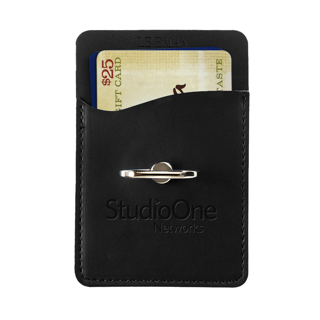 Leeman Black Tuscany Card Holder with Metal Ring Phone Stand