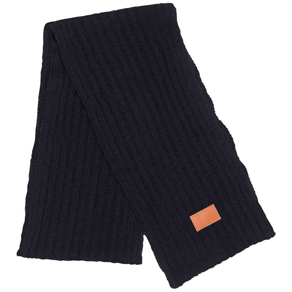 - 100% Acrylic rib knit scarf with PU patch for deboss.