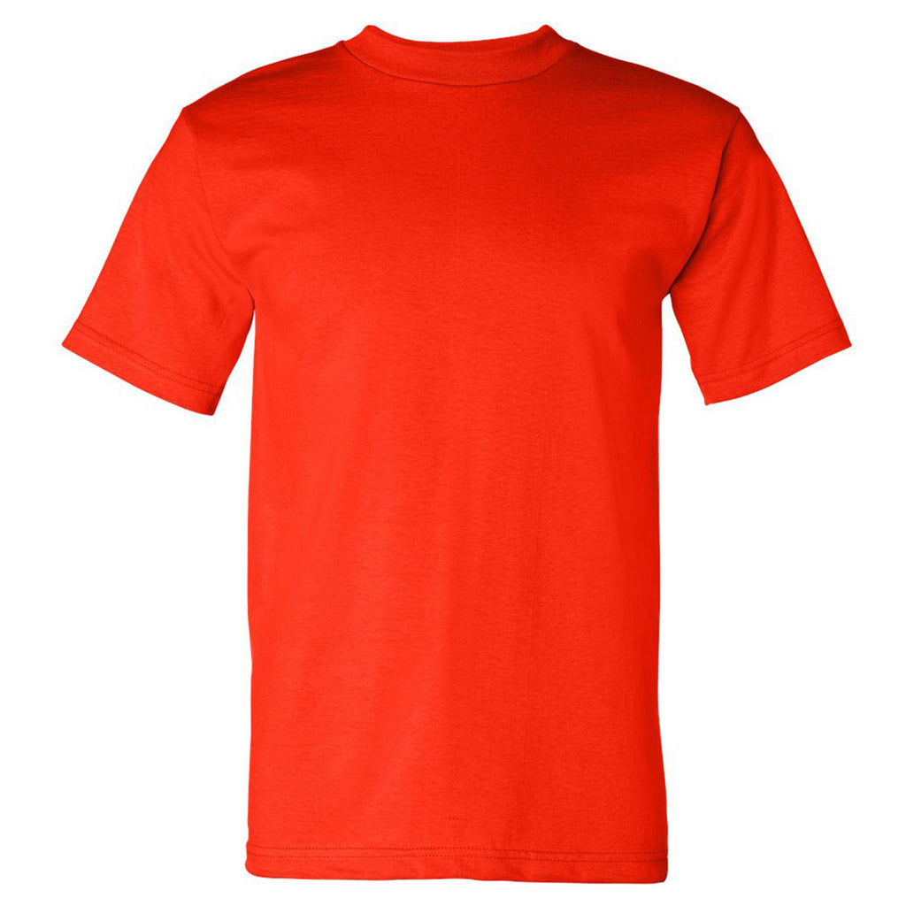 The Bayside Men's Bright Orange USA-Made Short Sleeve T-Shirt is more than just a T-Shirt, especially with your company's custom logo right there on the chest. The wide collar as well as the double-needle stitched sleeves and bottom hem put this shirt a cut above the everyday T-Shirt when it comes to fashion, and it would be a sharp company uniform. Available in a wide range of colors, your logo would blend in well regardless of its design. Or you could order different colors to give your employees a full uniform wardrobe. This logoed shirt also would be practical for company events such as trade shows.Highlights
