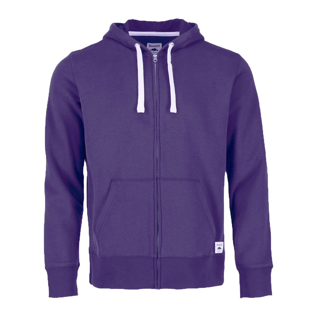 Get moving with a custom Roots73 Men's Bright Purple Paddlecreek Full Zip Hoody. This simple full zip hoody will look great with your custom logo whether given as a gift to family and friends or added to your own wardrobe. Add a company logo to the low shrink microfleece hoody with jersey lined, drawstring hood to give as employee gifts or to use as part of a uniform. The side pockets keep valuables safe as you go about your day in the hoody that is easy to layer with the full zip front.