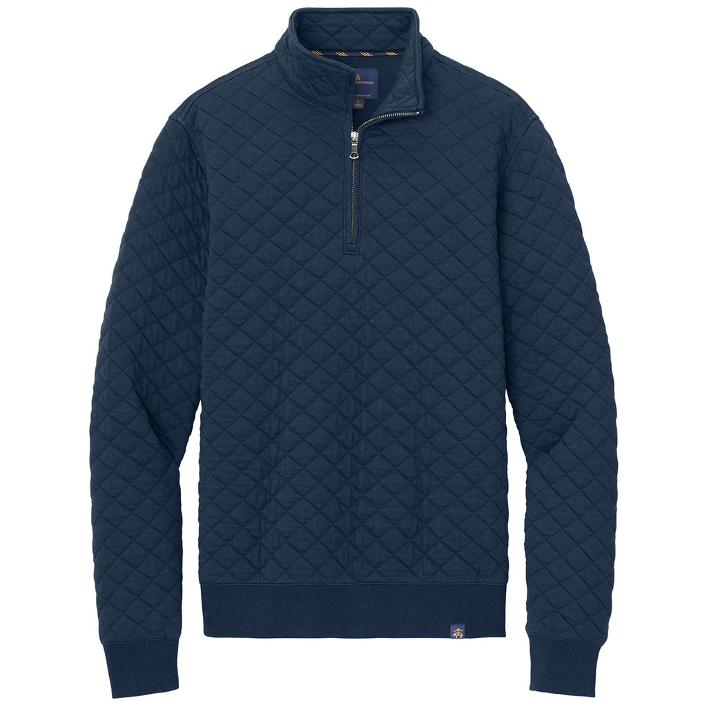 The Brooks Brothers Men's Navy Blazer Diamond Quilt 1/4-Zip delivers classic style with corporate branding appeal. Its quilted construction provides warmth without bulk, while the quarter-zip design adds versatility. Custom embroidery showcases logos with subtle sophistication, making this an excellent option for professional gifting or team apparel. Durable and refined, it reflects Brooks Brothers' tradition of timeless quality.