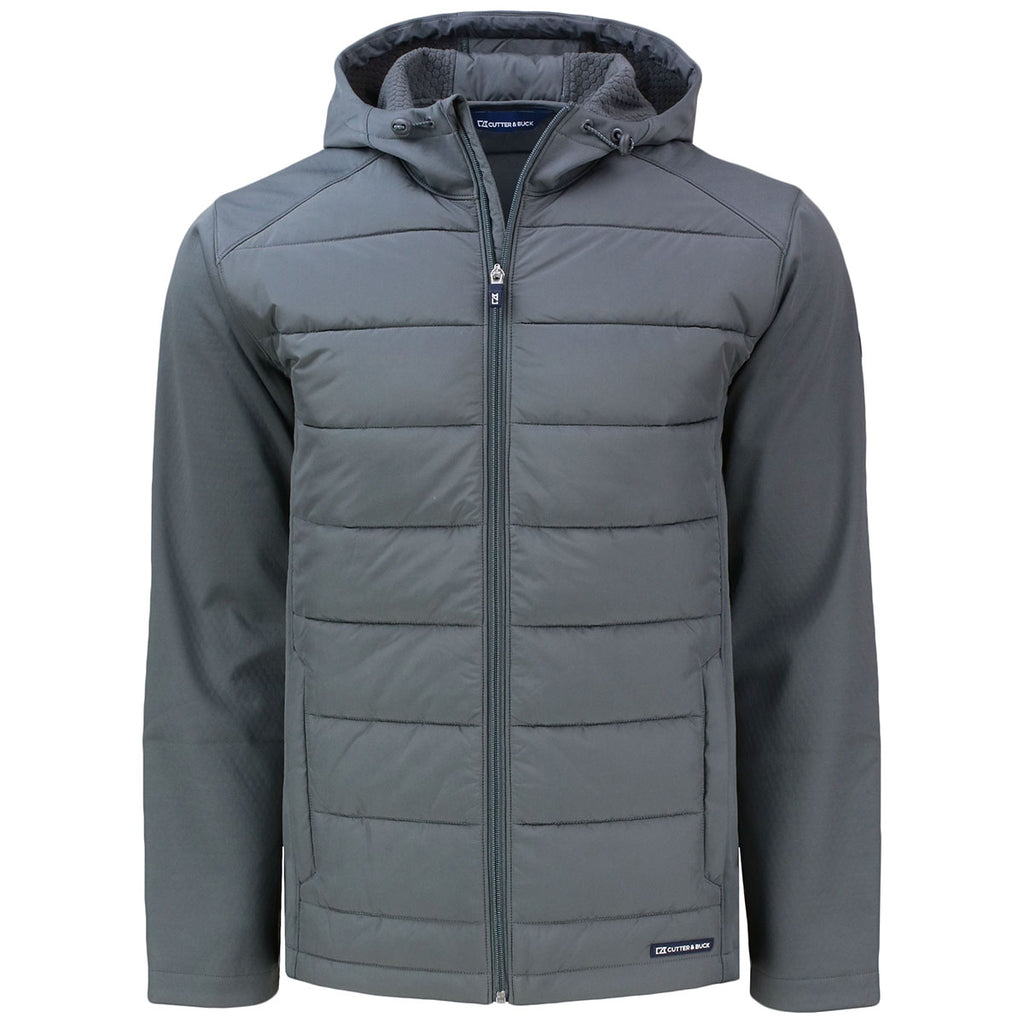 Cutter & Buck Men's Elemental Grey Evoke Hybrid Eco Softshell Recycled Full Zip Hooded Jacket
