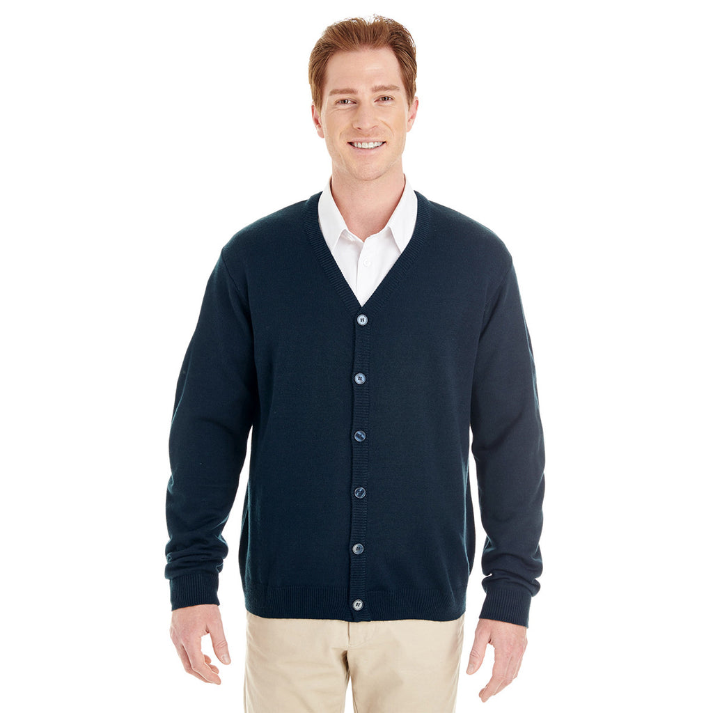 Dyed to color match buttons are just one unique design feature of the Harriton Men's Dark Navy Pilbloc V-Neck Button Cardigan Sweater. The V-neck design and button-front closure create a professional image when you need to call on customers. Wear the cardigan sweater at the office and then show off the stylish sweater at a dinner party after work. Rugged acrylic tightly weaves together to produce a sweater that never rips or tears. The sweater works as an outer layer worn over a polo, as well as the garment used to complement an oxford shirt and tie. Add your company logo to associate your brand with high-quality products and services.Corresponding Women's Style:Harriton Women's Dark Navy Pilbloc V-Neck Button Cardigan Sweater