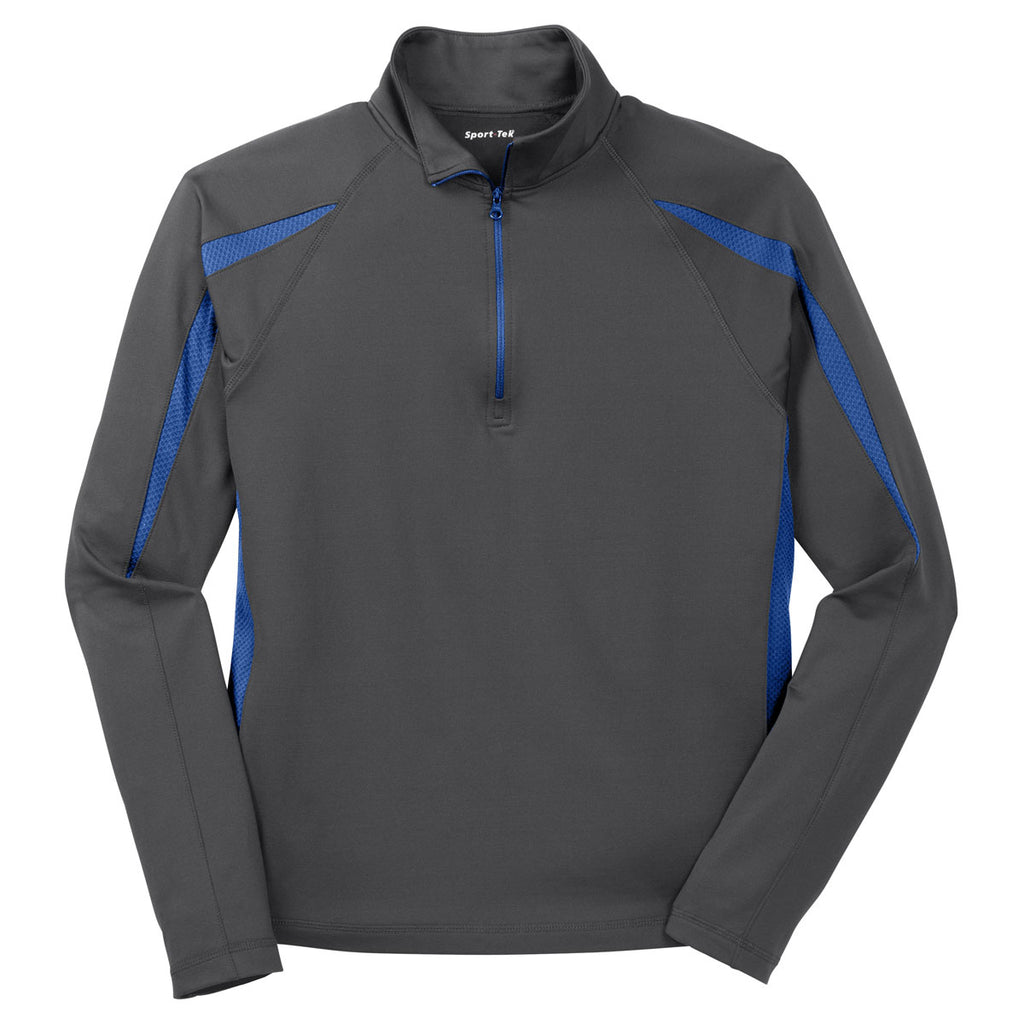 When the weather gets tough, so must you. That's the idea behind this Sport-Tek Men's Charcoal Grey/ True Royal Sport-Wick Stretch 1/2-Zip Colorblock Pullover. Add your own custom embroidery to make this a piece of corporate apparel that anyone can enjoy. Layering is ideally suited to serve as your canvas, and this is an item that will work for you in the elements, not against.Highlights