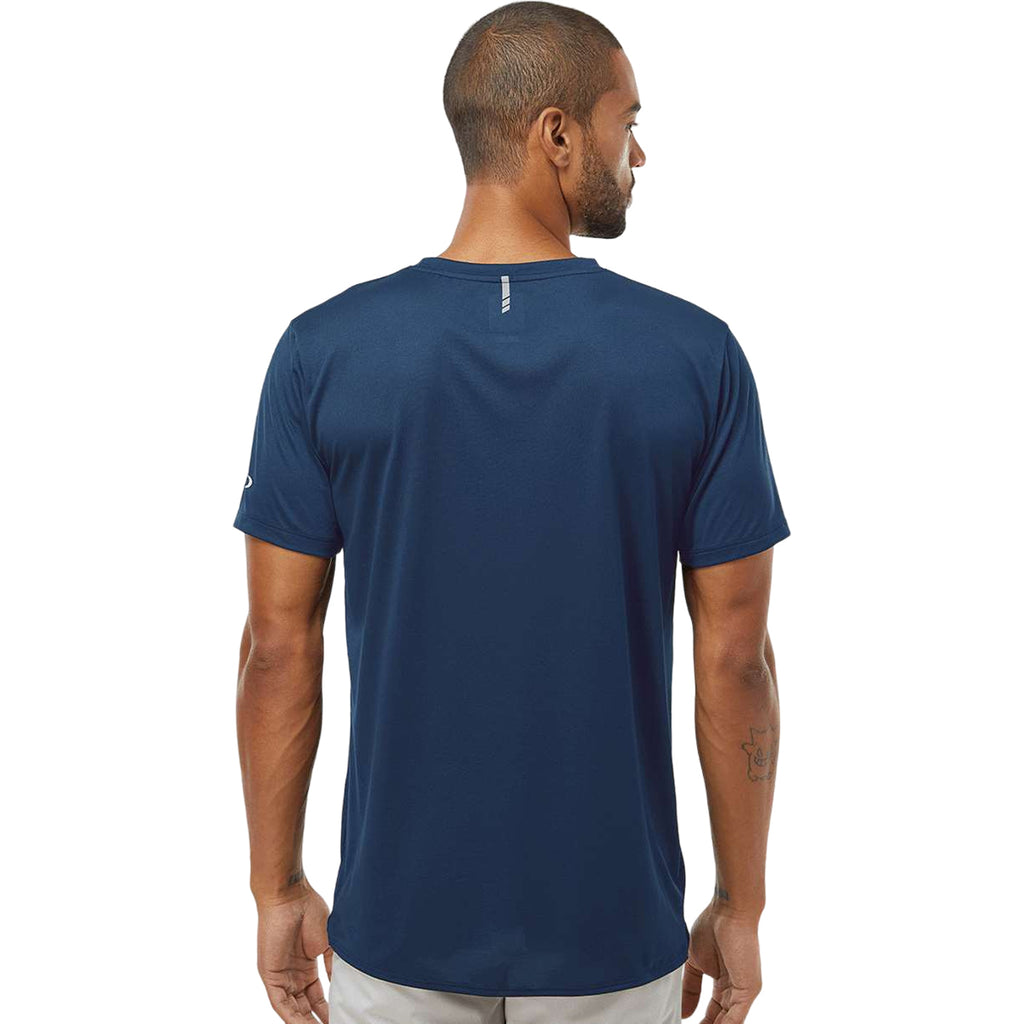 The Oakley Men's Team Navy Team Issue Hydrolix T-Shirt is a timeless piece that will make sure your company's custom logo or design always gets the attention it deserves. It doesn't matter if you're outfitting athletes or looking for a great promotional item, this breathable tee is ready to get the job done.