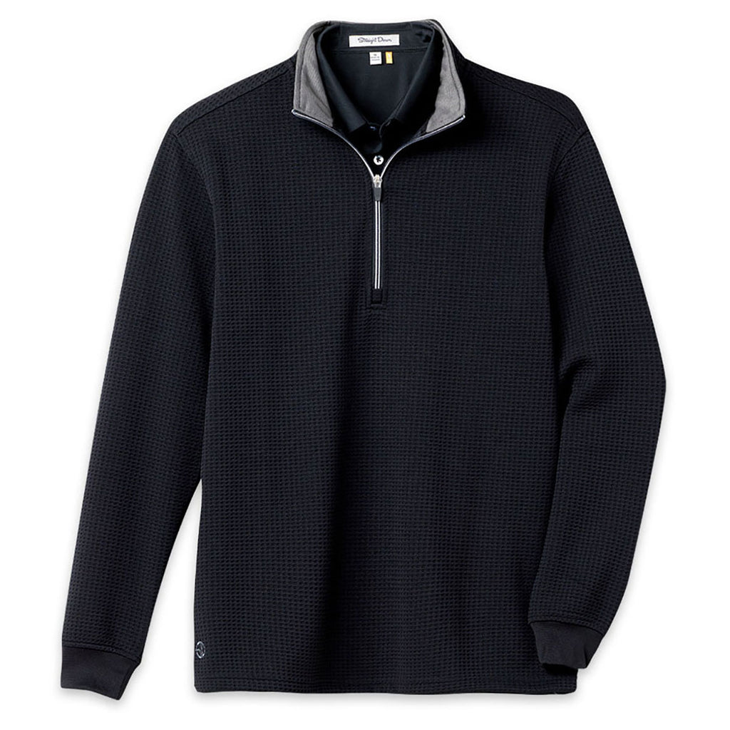 Designed for corporate branding or upscale casual wear, the Straight Down Men's Black Optic Quarter Zip stands out with its textured jacquard pattern. The breathable fabric stretches for comfort while providing a tailored look. Easy to layer over polos or tees, it's a go-to piece for team events or travel.Highlights