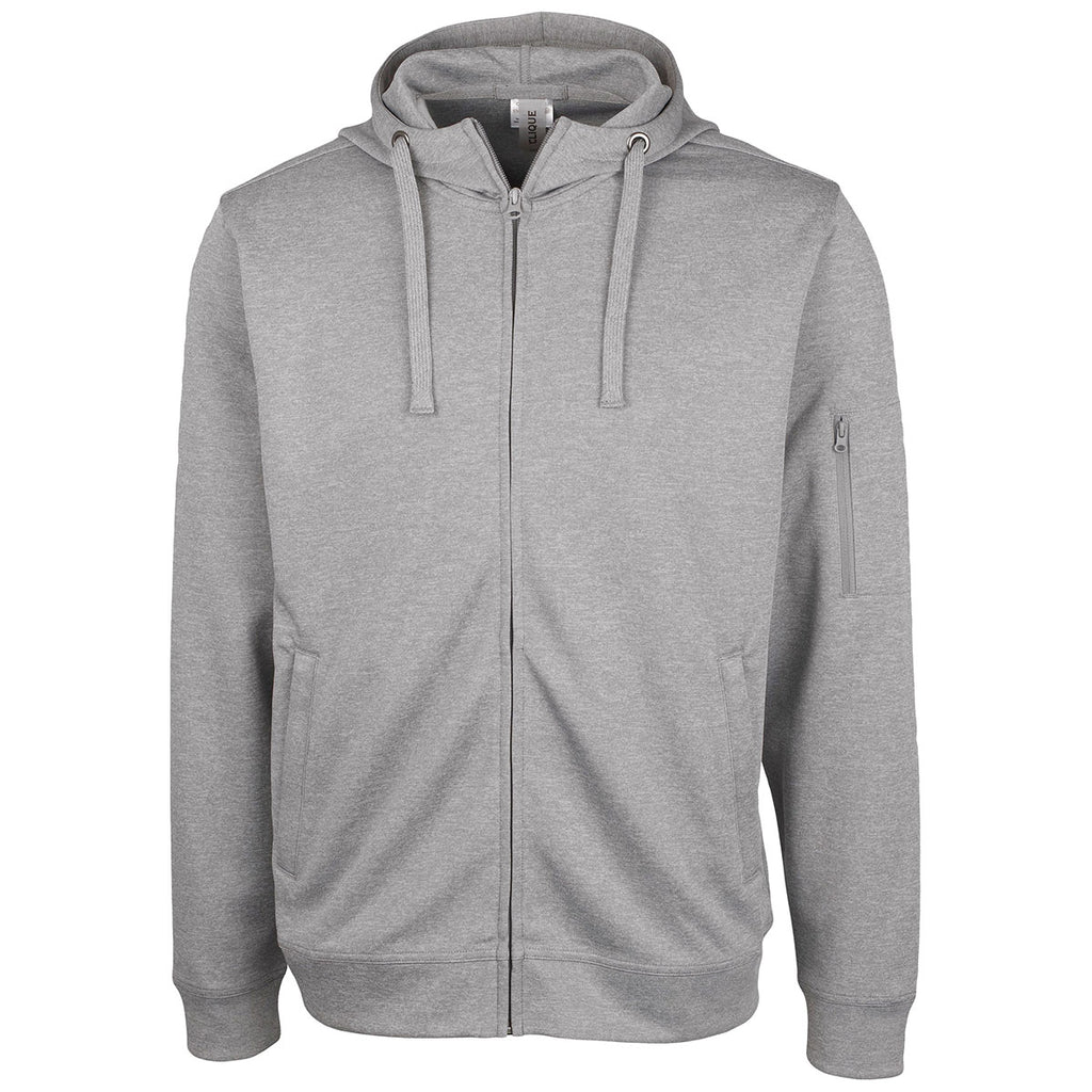 The Clique Men's Grey Melange Lift Performance Full Zip Hoodie is the perfect sweatshirt to throw on quickly when you want to be comfortable after a long, hard day at the office. A custom logo can be added to the front which provides an easy way to advertise your company name. Choose from classic colors and enjoy fabulous product features including 100% polyester interlock fabric, attached hood with drawstrings, full zip closure, welt pockets, zip pocket on sleeve, and self-fabric banded hem and cuff. Purchase a few of these must-have hoodies as employee apparel and hand them out to the top earners at your company. In fact, why not give everyone a company hoodie.Highlights