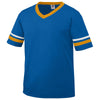 The stylish custom Augusta Sportswear Men's Black/White Sleeve Stripe Jersey will look even better with your corporate logo affixed to it. Available in 33 unique colors, the men's jersey includes features such as a 50/50 polyester/cotton jersey knit, contrast color v-neck collar, contrast color sleeve stripes, double-needle hem sleeves and bottom, and other enticing attributes. Add a screen print company logo to the front of this jersey and you have a wonderful way to advertise your company name. This jersey shirt will make a great employee apparel gift or a lovely giveaway item at upcoming golf events or recruiting events.Highlights