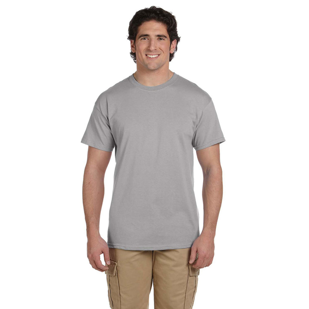 Practice being green in this custom Hanes Men's Oxford Grey 5.2 oz. 50/50 EcoSmart T-Shirt with the screen print of your choosing. Ideal for use as employee apparel as your workers will be comfortable all day in the cotton and polyester blend that contains up to 5% recycled polyester to help the planet. Make a statement at your next trade show or recruiting event with these company screen print tees that will be wanted by all. Also perfect for company outings or team sports in which knowing who is on your team is important. Place your order today for one of the 33 available colors.Highlights