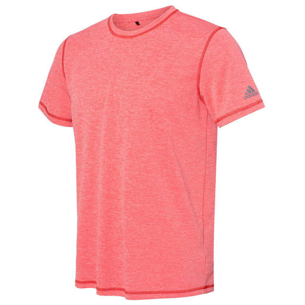Stay comfortable and look great in a screen print Adidas Men's Power Red Heather Sport T-Shirt. Ideal for the gym, a day with the family, or a quick round of golf, this 100% recycled polyester pique tee is good for the environment and great for you with UPF 50+ protection. Add a company logo to use these as employee apparel that will stand up to hard work or a corporate logo to use for corporate events as a way to showcase your company or organization. The crewneck design with open hem sleeve is designed for all day comfort whether worn alone or layered for warmth.