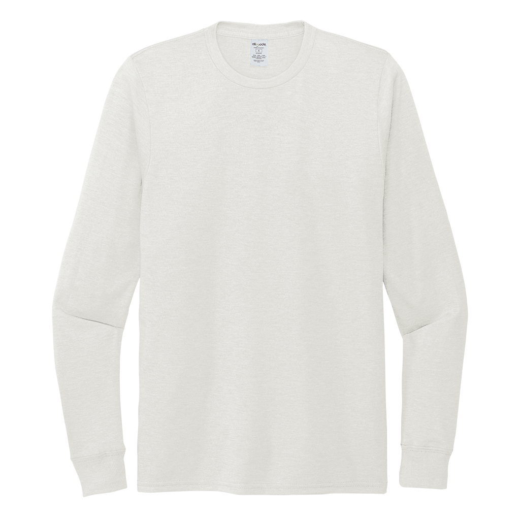 Screen print will pop on the Allmade Unisex Fairly White Tri-Blend Long Sleeve Tee. This is a tee for all occasions with long sleeve design and made of recycled materials to create sustainable clothing. Made from the equivalent of up to 6 plastic water bottles, this recycled apparel is a must have for the eco-friendly individual. Add a custom logo to create employee apparel or an entire logoed apparel line. Perfect for layering when the weather is a bit chilly or wearing alone whether you are running errands or heading to the gym, this rib neck tee is a must have.