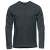 Stormtech Men's Black Equinox Long Sleeve Tee is a sustainably sourced tee that will handle your screen print with ease. The cotton-poly single jersey fabric is ultra-soft while maintaining its shape with repeated wash and wear. Created with moisture management to keep you comfortable and a UPF rating of 30+ this custom long-sleeve tee is great for working out, hanging out, and everything in between. Add a company logo to use as uniforms or employee gifts or add something custom to build your logoed apparel line. Great for trade shows and specialized events, but also wonderful for everyday wear. Place an order today for these versatile tees.Highlights