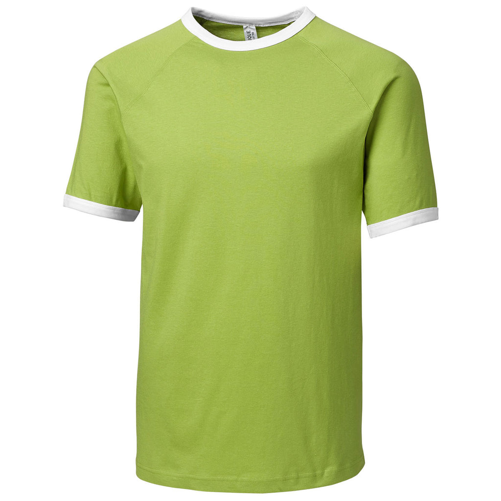When you want to get the word out about your brand at corporate sponsored golf tournaments, hand out the Clique Men's Light Green Playlist Ringer Tee to each member of your team. Tear away the label and screen print your company logo to expand awareness for your products and services. Raglan sleeves deliver enhanced mobility and contrast ribbed cuffs and collar present a refined appearance worth of an accomplished professional. Tightly stitched side seams resist the types of rips and tears that diminish the quality of other styles of custom designed corporate apparel.Highlights